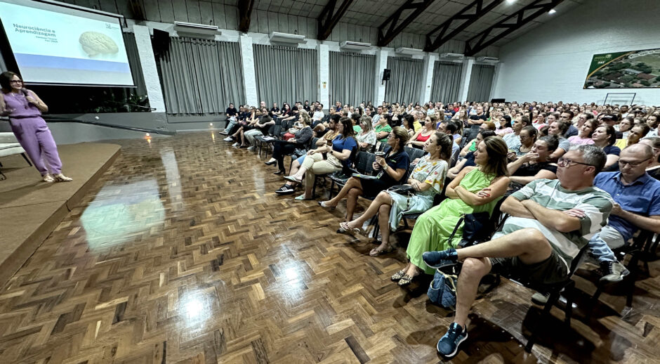 “Neurociência e aprendizagem – como o cérebro funciona no processo de aquisição de uma língua adicional” foi tema da aula inaugural para pais e responsáveis de estudantes da Educação Infantil ao Ensino Médio do Colégio Teutônia. Num auditório lotado, o assunto foi abordado pela mestre em Educação, Vanessa Tenório, especialista em Marketing e em Neurociência e Comportamento, pesquisadora e autora de material didático para o contexto bilíngue.