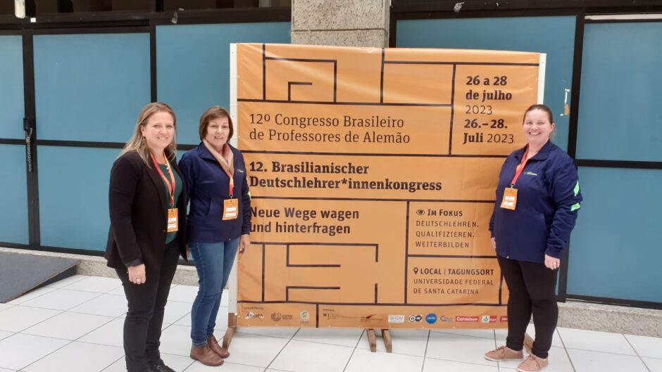 No período de 26 a 28 de julho, as professoras Cirlei Jasper, Tatiani Richter e Angelita Lohmann representaram o CT no Congresso Brasileiro de Professores de Alemão, em Florianópolis. Com palestrantes e professores vindos da Alemanha, de países da América Latina e de diferentes regiões do Brasil, o evento oportunizou a troca de informações quanto às novas tendências no ensino da Língua Alemã.