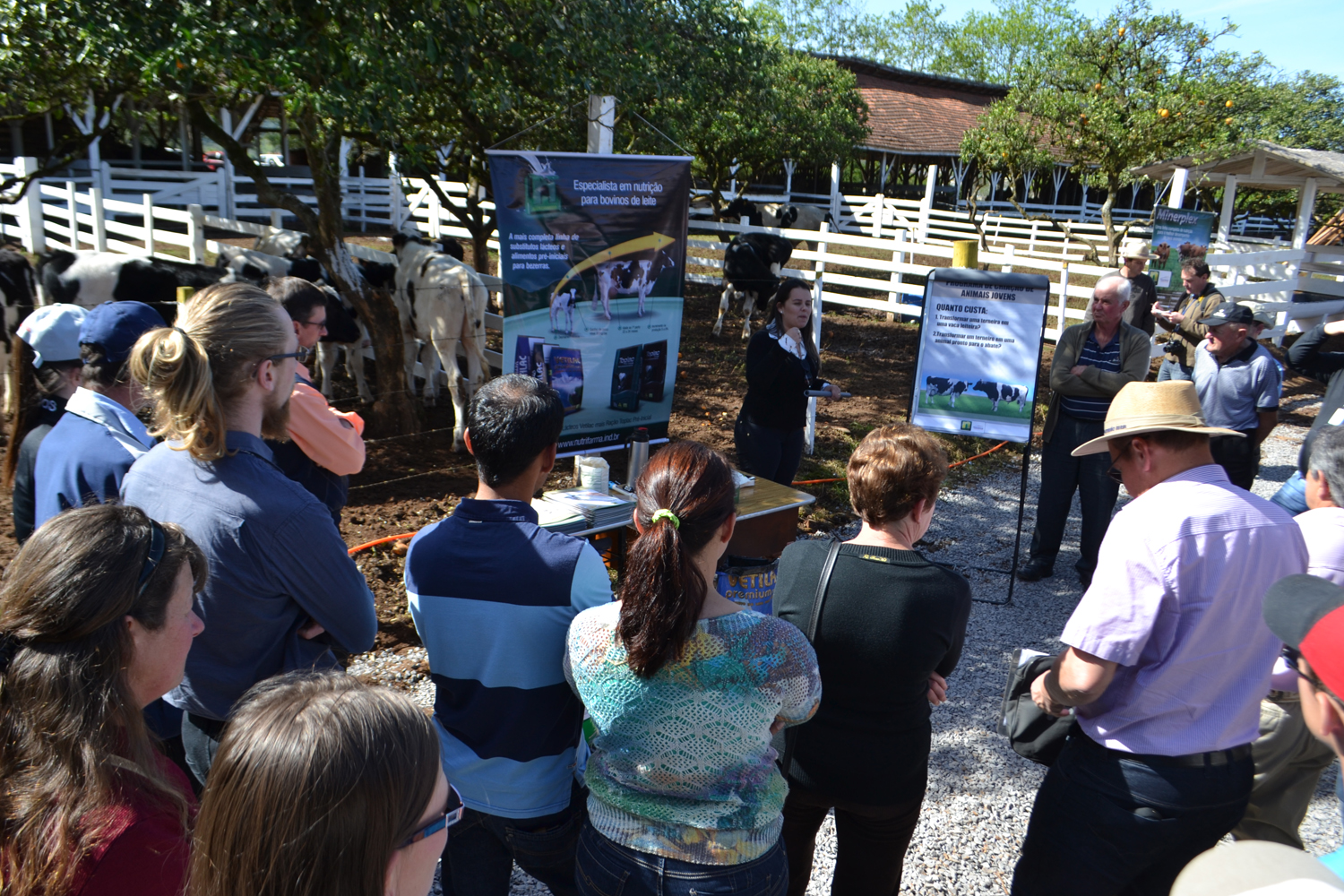 O espaço da empresa no Dia de Campo esteve subdividido em três áreas, considerando manejo dos animais em períodos de pré-parto e de transição, programa de criação de terneiros que busca projetar animais que explorem o máximo potencial genético e o aproveitamento do macho holandês. “A proposta considera a demanda crescente de produção de proteína animal no mercado mundial, o déficit brasileiro em produção de carne de qualidade, com o aproveitamento desses animais. Com esta tecnologia de criação do macho holandês, com uma dieta adequada, em até 11 meses ele passa a se tornar uma fonte de renda nas propriedades, quando está pronto para o abate. Nesse período ele atinge até 420Kg de peso vivo, momento em que se tem o melhor retorno econômico com esse animal”, resumiu.