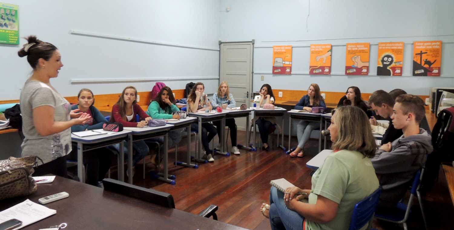 Recentemente os estudantes do programa Jovem Aprendiz do Colégio Teutônia, cotizados pela empresa Elebat Alimentos, participaram de atividade diferenciada. Na disciplina de Linguagem e Comunicação, eles receberam a visita da jornalista Luciana Brune, do Grupo Popular de Comunicação, para palestra sobre propaganda e publicidade.